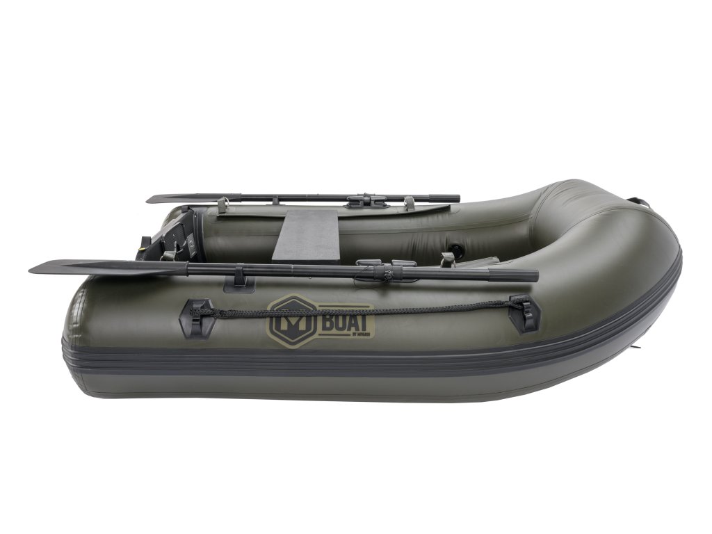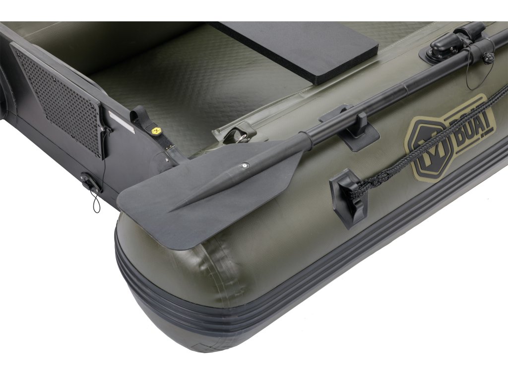 Druhá generace nafukovacích člunů M-BOAT AWB, která zachovává všechny výhody a unikátní vlastnosti tohoto modelu a přidává řadu vylepšení. Nadstandardní šířka a specifický tvar člunu zajišťují extrémně velký vnitřní prostor. Ten je vždy výrazně větší než u běžných člunů stejné délky na trhu. Tomu napomáhá i specifické řešení zadní části plováků, které dovoluje umístit zrcadlo co nejblíže ke konci plováků a zároveň zachovat jejich funkci při udržování směru jízdy. Výrazně zdvihnutá příď spolu se speciálním tvarováním přední části, mohutným nafukovacím kýlem v celé délce podlahy a speciálně tvarovaným zrcadlem zajišťují vynikající hydrodynamické vlastnosti člunu a směrovou stabilitu. To v praxi znamená vyšší rychlost , snadnější ovládání a nižší spotřebu energie při pohonu člunu. Zesílený materiál plováků zvyšuje odolnost proti proražení. Nafukovací podlaha se zdvojenou nášlapnou vrstvou je téměř nezničitelná a její zelená barva skvěle ladí s se zbarvením člunu i černými vesly a ostatními doplňky. Každý člun je vybaven řadou upínacích pásků na suchý zip v přední části i na zrcadle. Najdeme zde i masivní upínací popruh na příslušenství ve střední části.Čluny Mivardi svou kvalitou a inovativními vlastnosti zcela jistě předčí Vaše očekávání. Jsou vynikajícím pomocníkem, jak pro rybáře, tak i pro ostatní příznivce pobytu u vody. Čluny jsou vyrobené z kvalitního vrstveného a odlehčeného PVC korejské výroby s vysokou odolností vůči oděru a mechanickému poškození. Díky použití tohoto kvalitního materiálu je manipulace se čluny velmi snadná. Čluny jsou osazeny ventily s pojistkou pro snadné vyfukování a nafukování. Samozřejmostí jsou tři samostatně nafukovatelné komory pro bezpečnost posádky.