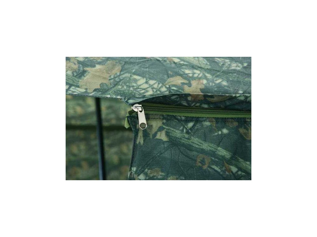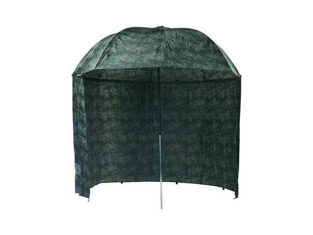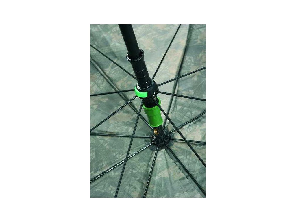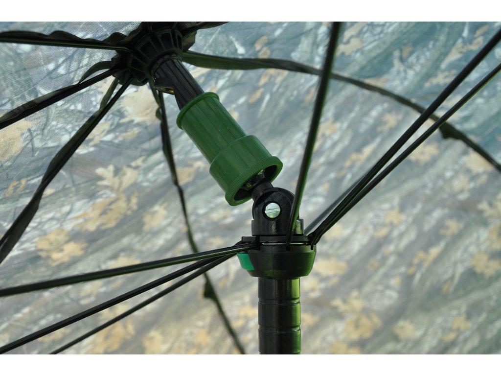 Kvalitní deštník s kloubem a bočnicemi. Je vybaven silnostěnnou tyčí, odolnou proti deformaci. Potah je vyroben z lehkého, avšak 100% nepropustného „pogumovaného“ materiálu v zajímavé maskáčové úpravě s lepenými švy.Deštník je vybaven masivním kloubem, díky kterému je možné deštník naklopit. Součástí deštníku je také boční závit k našroubování hlavní tyče, díky kterému můžete deštník zapíchnout do země již o 45° stupňů naklopený.