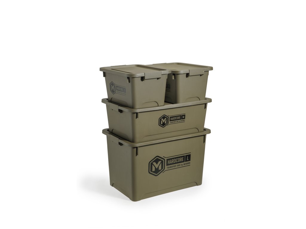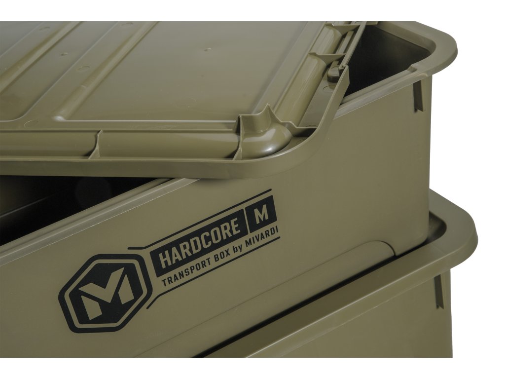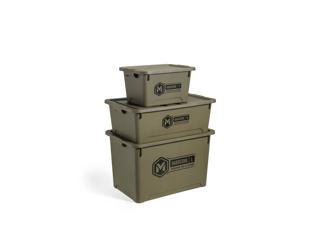 Hardcore Transport Box představují spolehlivé a bezpečné řešení pro přepravu a skladování nejen rybářského či outdoorového vybavení. Tyto uzavíratelné, odolné a stohovatelné boxy jsou dostupné ve třech různých velikostech. Zajišťují perfektní organizaci a pořádek u vody, při přepravě nebo v garáži. Velkou výhodou je jejich "hardcore" provedení. Robustní nárazuvzdorný plast odolává mechanickému poškození. Speciálně tvarované víko je vybaveno zpevňujícími prolisy, které zároveň napomáhají zajistit stabilní polohu boxů při jejich stohování na sebe. Víko díky svému nízkému profilu kopíruje horní hranu boxu a zbytečně nevyčnívá. Nedochází tak k plýtvání místem při naskládání více boxů na sebe. Robustní zámky víka jsou snadno ovladatelné a nepřekážejí ani v případě manipulace s otevřeným boxem bez víka. Při uzavření zámky bezpečně drží víko na svém místě i v případě otřesů nebo při převrácení boxu. Prázdné boxy je velmi snadné skladovat - pasují totiž jeden do druhého. Velký a střední box mají shodný půdorys a liší se pouze výškou. Střední box je svou výškou ideální pro zasunutí pod lehátko. Malý box má poloviční půdorys a skvěle se hodí na drobnější příslušenství, do člunu i jako box na nástrahy.Základní rozměr - bez víka: