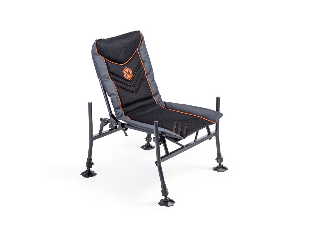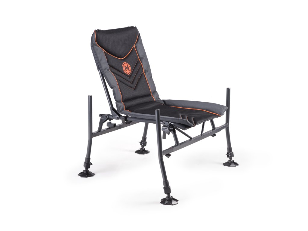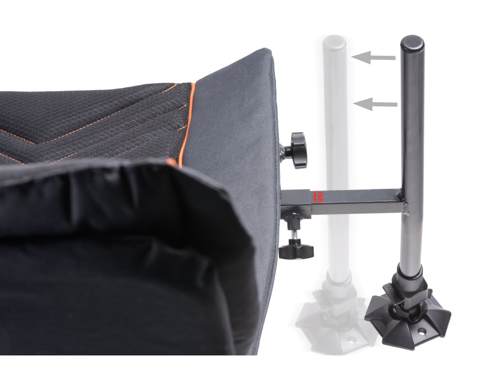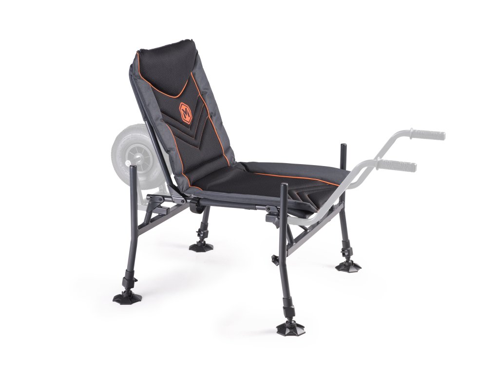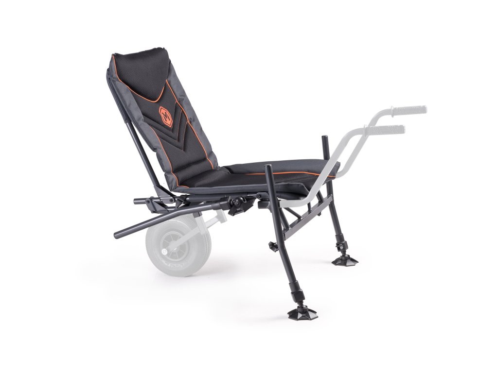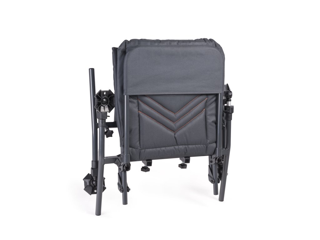 Speciální křeslo pro lov na feeder. Je osazeno čtyřmi teleskopickými nohami pro snadné ustavení na nerovném břehu. Nohy mají průměr 25mm a proto umožňují nasazení nejrůznějšího příslušenství, které je pro tento průměr snadno dostupné. Přední nohy umožňují variabilní vysunutí do stran a tím i dosažení ještě vyšší stability. Anatomické tvarování matrace je podpořeno i tvarováním rámu sedáku. Optimálně zvolené polstrování zajišťuje vysoký komfort i při dlouhém sezení. Toto křeslo může být doplněno o unikátní přepravní systém (dostupný samostatně). Ten z křesla během několika vteřin udělá stabilní transportní vozík, který zajistí pohodlnou přepravu celé vaší výbavy.Doplňkové parametry