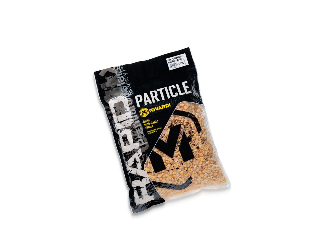 Zrna z pečlivě vybraných odrůd kukuřice, vařená v páře. Tento nejšetrnější způsob tepelné úpravy zachovává přirozenou chuť a vůni. Zároveň nedochází ke ztrátě živin a obsažených atraktorů, jako je tomu při vaření ve vodě. Má jemně nakyslou chuť, způsobenou přidáním malého množství kyseliny mravenčí. Ta působí jako atraktor pro ryby a zároveň plní funkci šetrného přírodního konzervantu. Kukuřice je pomocí speciální technologie balena ve vakuu což zajišťuje dlouhou trvanlivost při zachování maximální čerstvosti a atraktivity. Vakuum zároveň zajištuje maximální absorpci přidaných esencí. Kukuřice je dodávána v několika atraktivních příchutích a je připravena k okamžitému použití. Stačí ji pouze vysypat ze sáčku a přidat k vaší vybrané krmné směsi nebo ji použít samostatně. Tento partikl Mivardi neobsahuje glycerin, monopropylenglykol ani jiné podobné stabilizační látky, které obalují jednotlivá zrna a potlačují jejich přirozenou atraktivitu a zhoršují fungování v chladnější vodě.Doplňkové parametry