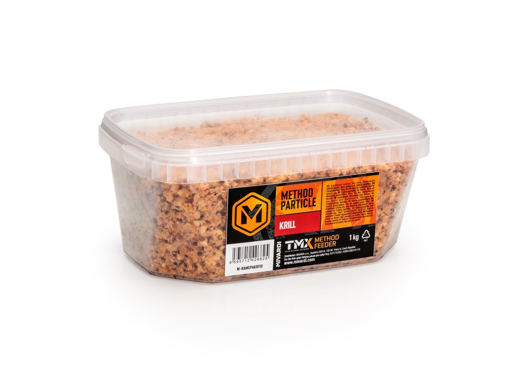 Pečlivě vyladěný mix prémiového drceného partiklu pro lov kaprovitých ryb. Jednotlivé druhy semen jsou vařeny v páře a následně drceny na směs s optimální zrnitostí a lepivostí. Tento nejšetrnější způsob tepelné úpravy zachovává přirozenou chuť a vůni. Při jeho použití je rovněž zachována i maximální atraktivita přírodních složek a nedochází ke ztrátě živin, jako je tomu při vaření ve vodě. Směs má mírně nakyslou chuť, způsobenou přidáním malého množství kyseliny mravenčí. Ta působí jako atraktor pro ryby a zároveň plní funkci šetrného přírodního konzervantu. Method partikl je dodáván v několika účinných příchutích a je plně připraven k použití. Díky své konzistenci výborně drží v krmítku. Po dopadu do vody okamžitě uvolňuje pro ryby neodolatelný mrak jemných částic. Velké množství hrubších kousků pak udržuje ryby delší dobu v lovném místě a napomáhá k selekci větších kusů. Tento partikl Mivardi neobsahuje glycerin, monopropylenglykol ani jiné podobné stabilizační látky, které obalují jednotlivá zrna a potlačují jejich přirozenou atraktivitu a zhoršují fungování v chladnější vodě.Doplňkové parametry