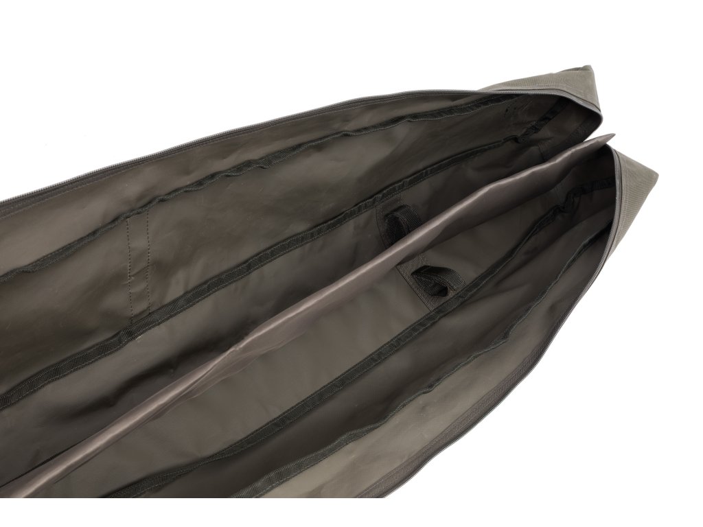 Obaly na pruty série Entrix nabízejí maximální kvalitu zpracování, materiálů i použitých komponent v mimořádně dostupné cenové hladině. Jsou vybaveny popruhy přes rameno i uchy pro přenášení v ruce. Vnitřní prostor je rozdělen polstrovanou přepážkou na dvě komory, vybavené fixačními pásky na upevnění prutů uvnitř. Vnější kapsy na obou stranách obalu jsou vybaveny dlouhými zipy pro snadný přístup. Jsou zde umístěna i další poutka a úchyty pro připevnění deštníku, podběráku a dalšího rozměrného příslušenství. Samozřejmostí jsou zátěžové zipy s ergonomicky tvarovanými táhly. Na obalech jsou použity a designové popruhy nejvyšší kvality.215 - pouzdro pro dvoudílné pruty délky 3,90m.