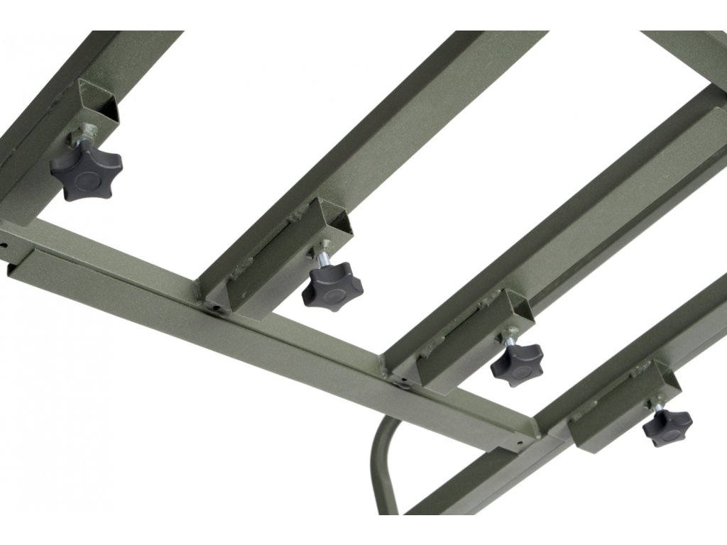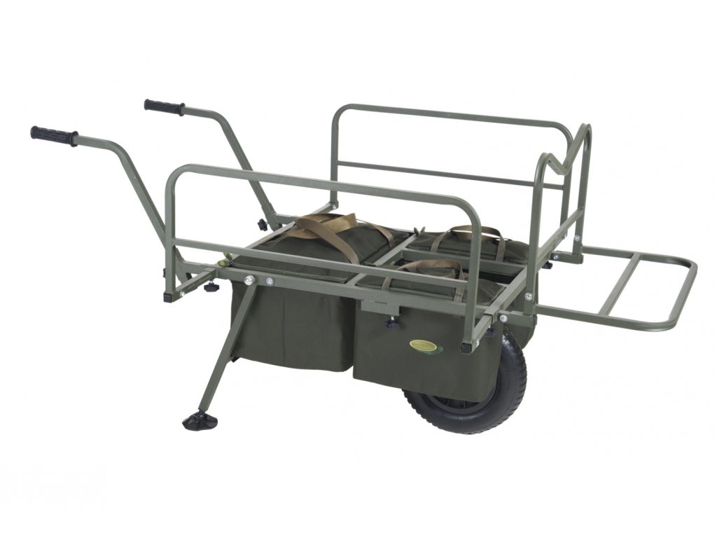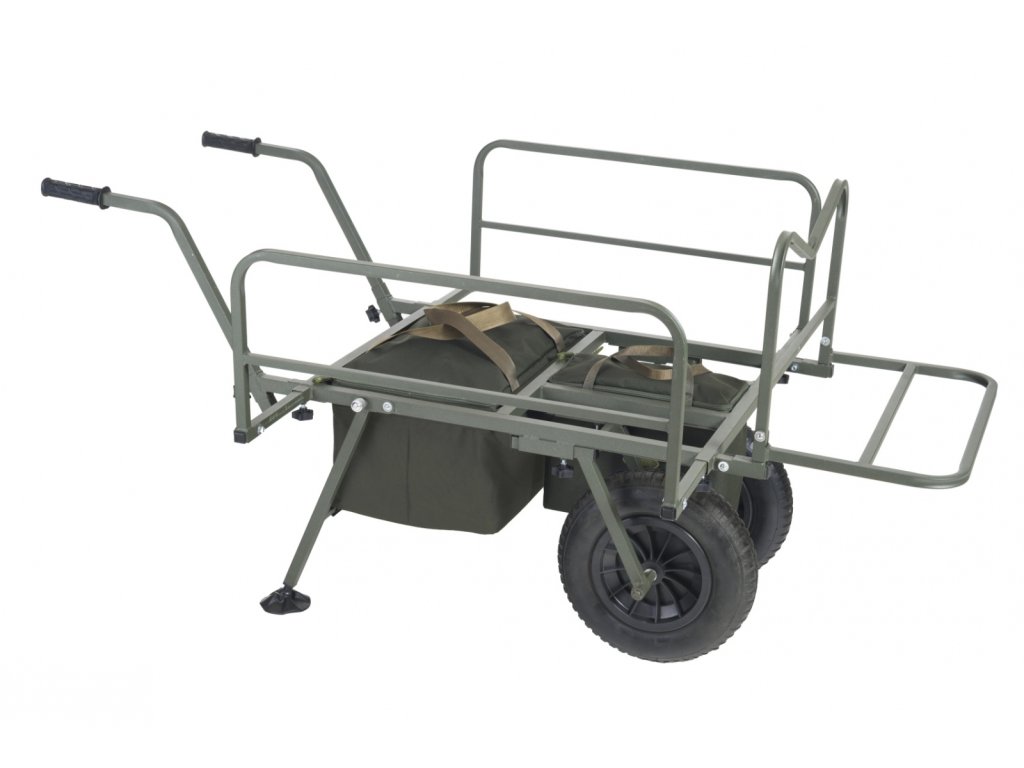 Nekompromisní a dokonale variabilní systém pro přepravu kompletní výbavy na lovné místo. Rám vozíku umožňuje snadnou přepravu i největších XXL transportních tašek v přední části a boční výsuvné díly vyvoří dostatečně velký prostor pro bivak, lehátko, křeslo a další doplňky. Systémové tašky s prakticky řešeným uchycením v rámu pomocí kovových obručí pojmou velké množství drobnějšího příslušenství. Pohodlné a výškově stavitelné rukojeti spolu s výborně navrženým těžištěm zajišťují snadnou ovladatelnost plně naloženého vozíku. Pokud je třeba přepravit opravdu těžký náklad, lze k vozíku velmi snadno přidat druhé kolo a zvýšit tak jeho reálnou nosnost.Pozor – huštění pneumatiky vozíku - na kole je napsáno 25 PSI, ale nejedná se o Bary! Převedeno na Bary je to 1,723 Bar - ideální je hustit na 1,5 Baru!