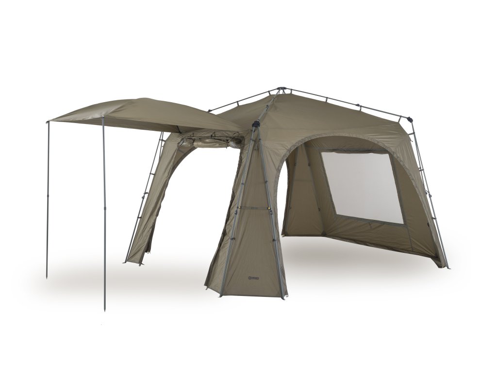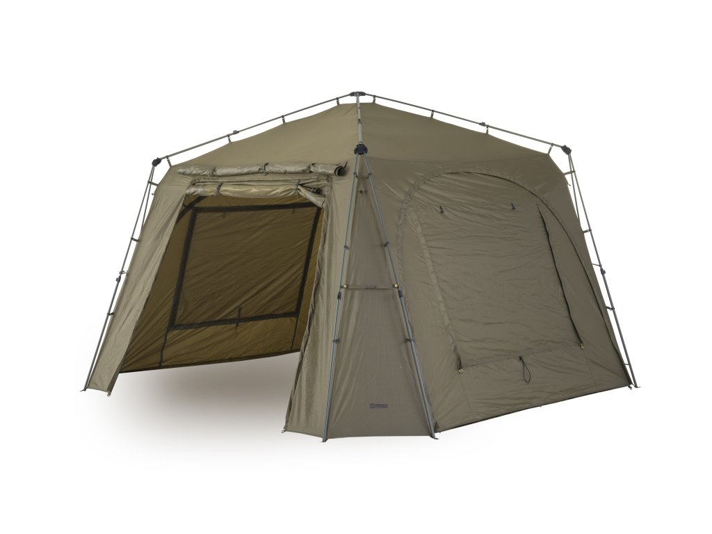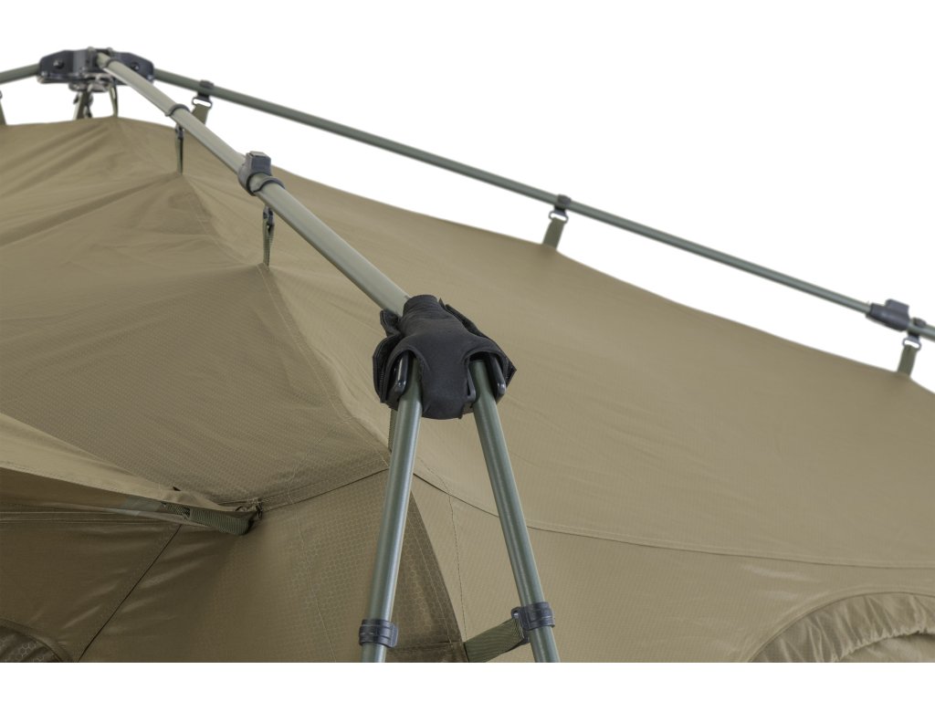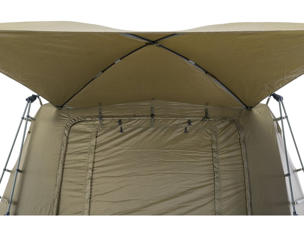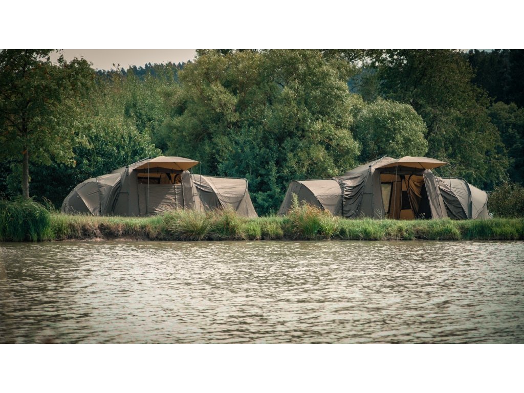 - K přístřešku Base Camp lze pomocí Bivvy Connection Kitu připojit jakýkoliv bivak nebo brolly na trhu