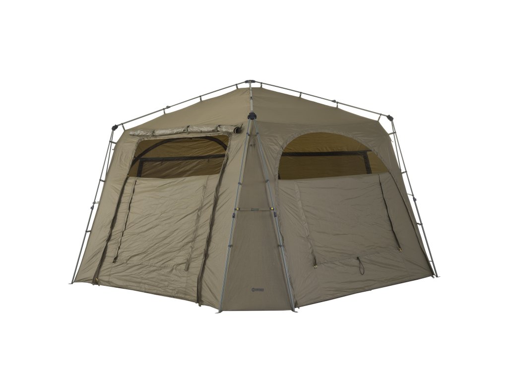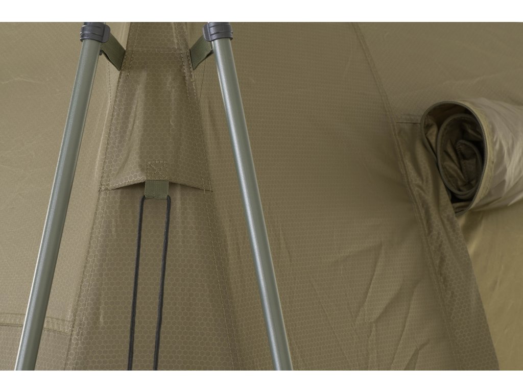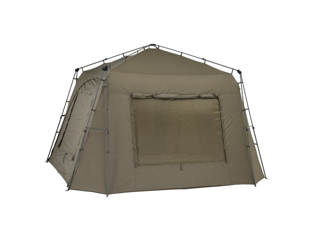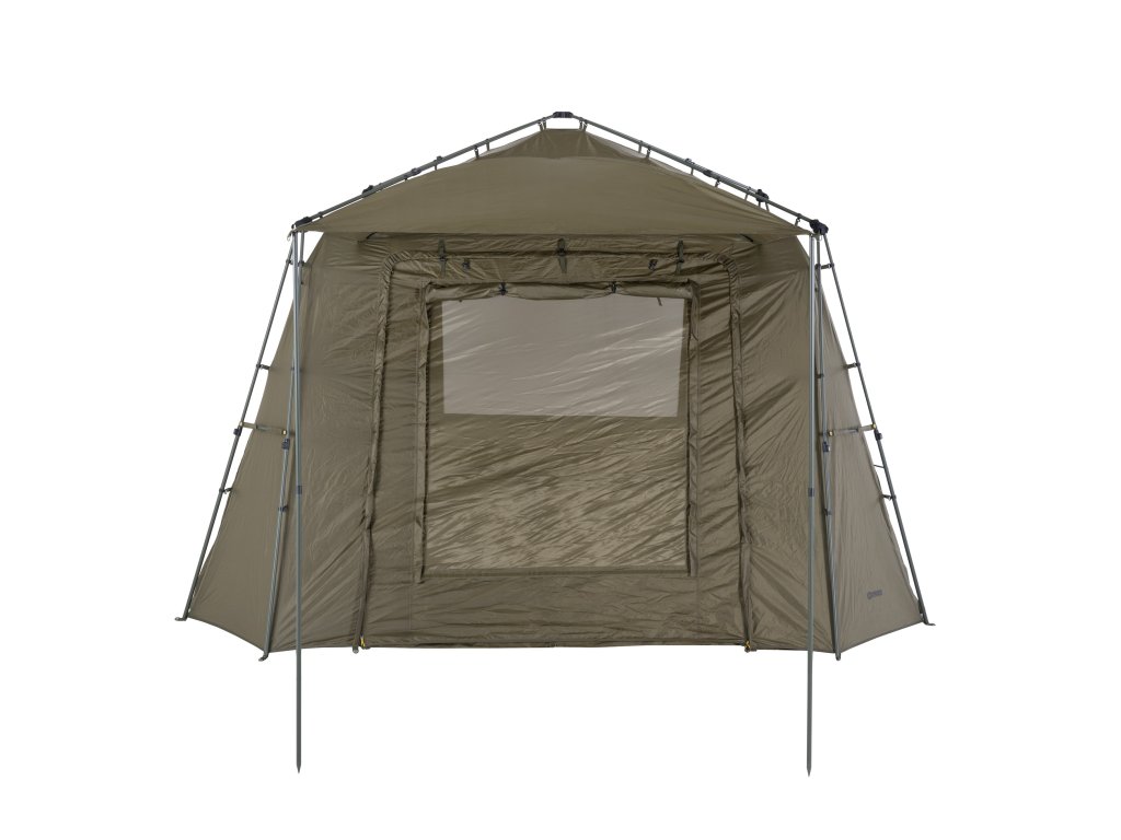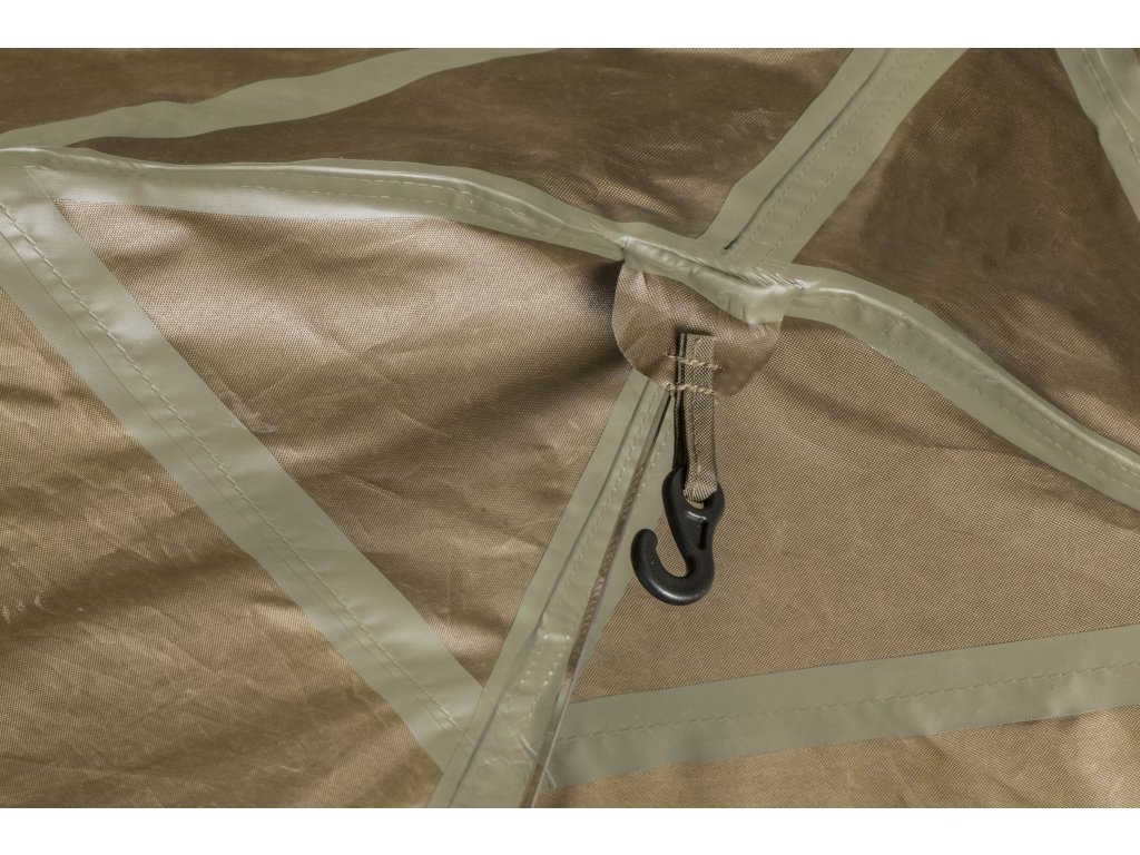 - K přístřešku Base Camp lze pomocí Bivvy Connection Kitu připojit jakýkoliv bivak nebo brolly na trhu