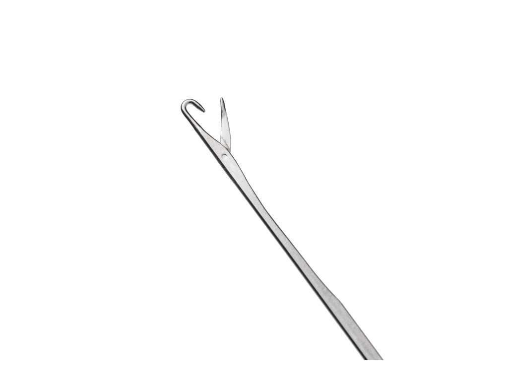 Velmi pevná víceúčelová jehla se světélkujícím držadlem. Je skvělá i v situaci, kdy potřebujete propíchnout tvrdší nástrahu a poté snadno a bezpečně protáhnout vlas. Ergonomicky tvarované světélkující držadlo s pryžovým středem zajišťuje pohodlný a pevný úchop.Rozměr madla je 3,3 x 2,4 cm, délka bodce je 6,3 cm.