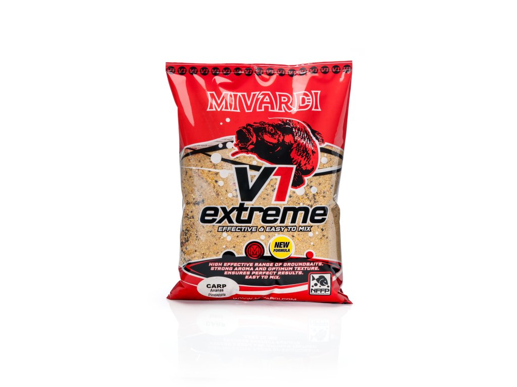 Nová generace základních krmiv v ekonomicky výhodném 2850 gr. balení. Krmiva jsou vhodná pro použití do krmítek i pro vnadění rukou. Základem těchto krmiv jsou podobně jako u těch nejlepších řad mletá aromatizovaná pečiva, biskvity, semínka a další skutečně účinné komponenty. Díky tomu mají krmiva V1 mnohem vyšší účinnost než běžná krmiva za podobnou cenu, která jsou postavena na „ochucených šrotech“. Již při pohledu na krmení V1 v suchém stavu je zřejmé, že obsahuje skutečné komponenty různých zrnitostí a tím zajišťuje správnou konzistenci a optimální práci po vhození do vody. Velmi hrubé krmení s aktivními kousky a velmi účinným kořeněným aroma, které ryby doslova milují. Je vhodné k celoročnímu použití. Skvělých výsledků však dosahuje i v chladném období.Doplňkové parametry