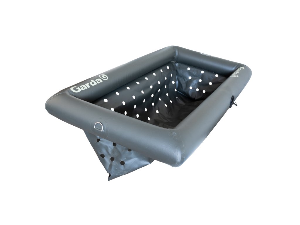 Skvělá pomůcka nejen při focení ryb ve vodě, ale také k jejich bezpečnému krátkodobému uchování poblíž břehu. Ryba je v nafouknuté podložce umístěné ve vodě absolutně v bezpečí, je v přirozené poloze, proudí ji tam otvory voda a nemůže se nijak poškodit. Nemusíte ji tedy polívat ani se o ni nijak starat, ryba má vše, co potřebuje. Vy si mezitím v klidu můžete nachystat vše pro focení či vážení. Podložka je vyráběna z velmi kvalitního PVC, má tři úchytná kovová očka, provázkem s karabinou a je dodávána s nožní pumpičkou. Vše v pevné nepromokavé tašce na zip. Tento vylepšený model má i přetlakový ventil, aby při dlouhodobém používání na slunci se nesnižovala životnost podložky.