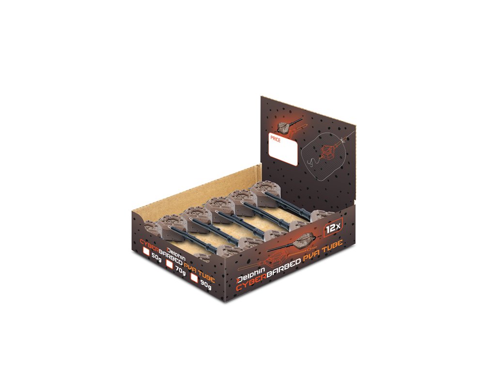 CyberBarbed PVA tube je inovativní olověná zátěž, speciálně navržená pro lov s PVA sáčky. Vyznačuje se jedinečným hranatým tvarem, který umožnil vytvořit kompaktnější zátěž. Od ostatních olov se tak liší menší velikostí při zachování stejné hmotnosti. Právě tento faktor vám zaručí výborné nahazovací vlastnosti a rychlé klesání ke dnu. Tvar olova dokonale zapadne mezi krmnou směs v PVA sáčku, což vám výrazně zjednoduší jeho přípravu. Pro docílení co nejdelších a nejpřesnějších hodů je navíc spodní část zátěže rozšířena, aby se zde koncentrovalo více hmoty a tak dokážete prodloužit vaše hody o několik metrů i tehdy, když se zátěž nachází uložená v PVA sáčku. Pro úplné odlišení od ostatních inline olověných zátěží podobného typu, designérský tým značky Delphin vytvořil odnímatelnou olověnou část s drážkou pro vlasec, které je zajištěno gumovou bužírkou. Po stažení gumové bužírky přetáhnete vlasec přes drážku na olověné zátěži a vyměníte za jinou, kterou aktuální podmínky vyžadují. Celý úkon dokážete provést bez zbytečného stříhání kmenového či šokového vlasce. Takové provedení vám ušetří spoustu času a provede výměnu zátěže jednoduchou. Trubička je kompatibilní s obratlíky vel. 4 z naší nabídky, které do ní dokonale zapadnou a zaručí, že olověná zátěž zůstane vždy při vaší montáži. Nejpodstatnější výhodou této olověné zátěže je důmyslně propracovaný upínací systém pro zjednodušené upevnění ke kmenovému, popřípadě šokovému vlasci. Upínací systém je zhotoven z pevného přetvarovaného drátu, který je na spodní části zakončen rychloupínacím klipem pro rychlé zavěšení koncové montáže. Za pomoci upínacího systému si tak dokážete rychle vyměňovat, již předem připravené PVA sáčky spolu s olověnou zátěží a koncovou montáží. To udělá váš lov mnohem efektivněji, což v konečném důsledku bude znamenat více úlovků. Povrch zátěže je chráněn barvou v přírodních odstínech hnědé s černými frkanci, což dokonale kamufluje její přítomnost na dně. Výstupky na hlavních plochách zátěže eliminují klouzání po dně. PROTECTED DESIGN - Tento produkt byl kompletně navržen designéry značky Delphin. Jeho design a technické řešení jsou natolik unikátní, že je registrován a chráněn na území celé Evropské unie.Doplňkové parametry