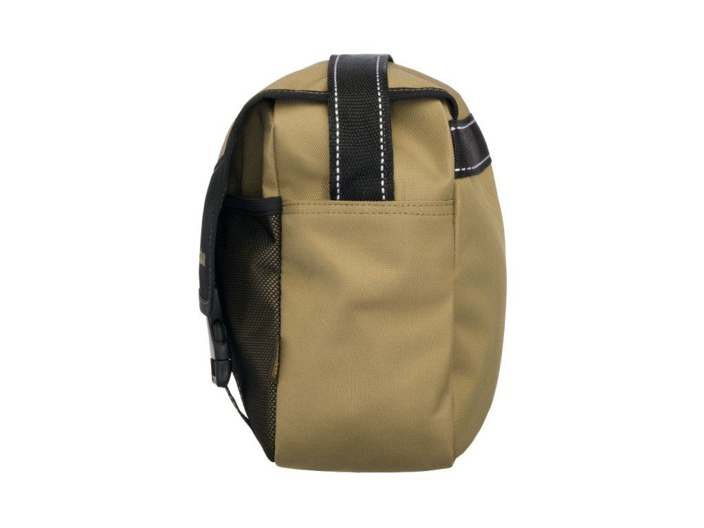 Vyrobena je z odolného nylonu 600D s extra PVC laminováním. Plně voděodolná. Nový vzhled tašky navíc vyzdvihuje kombinace barev jako jsou olivově zelená a černá, která dává této řadě funkční a praktický design. Specifikace: - použitý materiál 600D nylon s extra PVC laminováním - praktický design s kapsami - hlavní komora na zip s vrchním přehozem pro zamezení vstupu vody - plastové klipy pro rychlé zabezpečení - nastavitelný ramenní popruh - atraktivní kombinace barev olivově zelená a černá - rozměry: 13 x 5 x 10 palců (32,5 x 12,5 x 25 cm)Doplňkové parametry