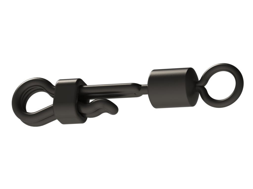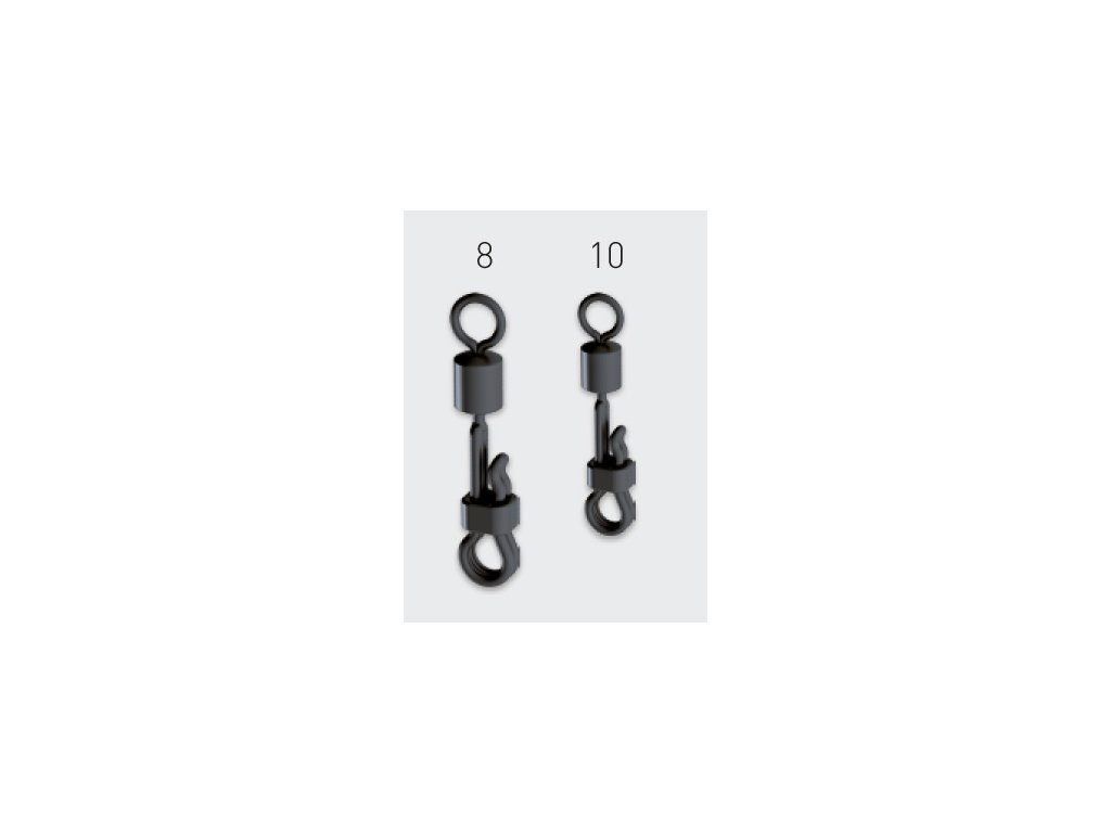 Černý antireflexní Quick Lock obratlík má místo očka rychlovýměnou sponu s pojistkou. Velikost 8 pasuje do klasických Závěsů na boční zátěž. Umožňuje rychlou a pohodlnou výměnu koncových udic.Doplňkové parametry