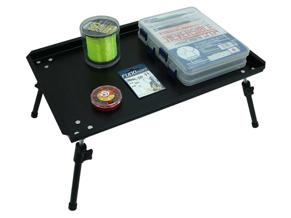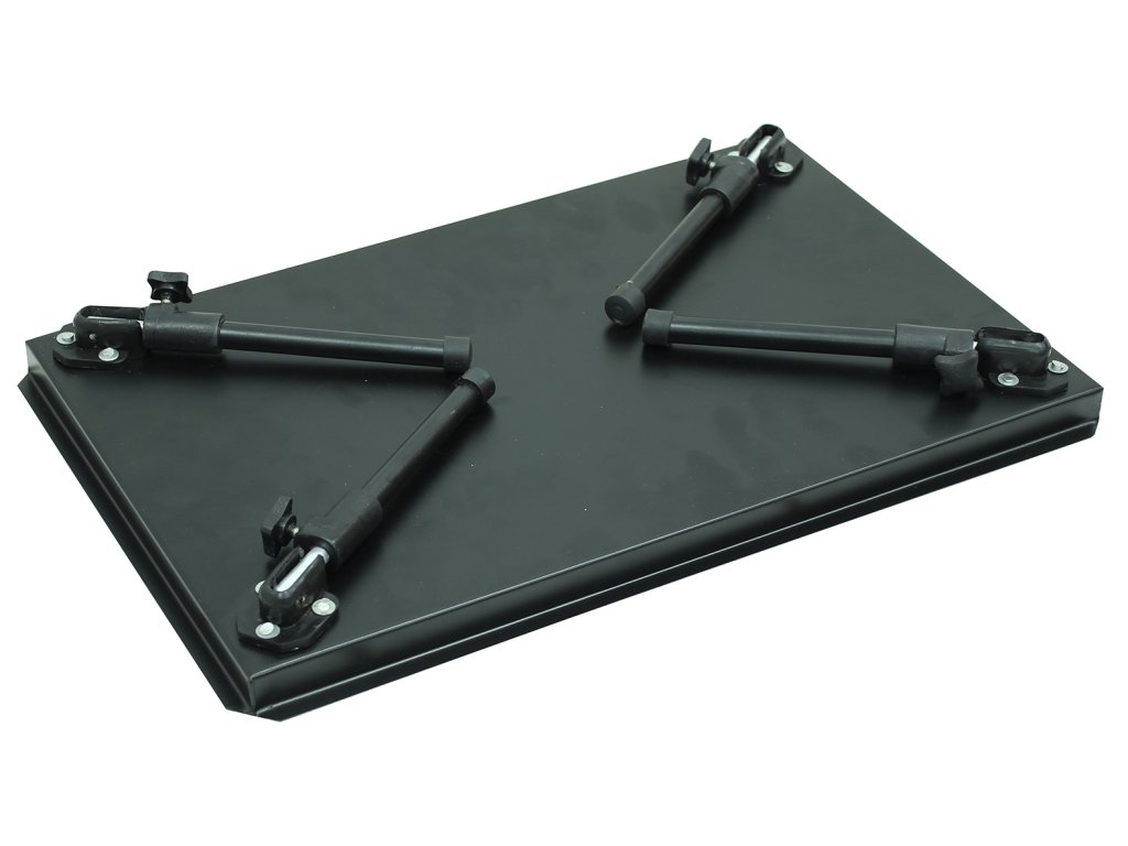 <p>Skládací stolek je z plechu a tabule je eloxovaná černou barvou, nohy mají rychlo sklápěcí mechanismus a teleskopické nohy + přepravní taška.<br />* Material: Fe - Plech<br />* Rozměry: tabule 42,5 × 27,5 cm,<br />* Výška 18 až 24 cm<br />* Váha: 0,8 kg<br />* Transport: 42,5 × 27,5 × 4 cm</p>Doplňkové parametry