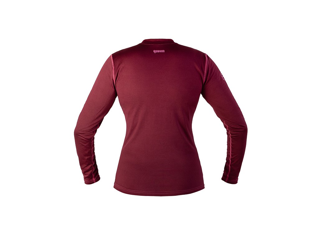 Vychutnejte si pobyt v přírodě i během chladného počasí s termoprádlem Delphin QUEEN 4LOVE. Termo set Queen byl speciálně navržen pro něžnější pohlaví, aby dokonale chránil před nízkými teplotami během rybářských výprav, vycházek v přírodě či zimních sportech. Kombinace použitých materiálů vytváří na dotek velmi příjemnou elastickou tkaninu, která zajistí maximální komfort i během studených zimních dní. Designově je set navržen v luxusní vínové barvě s růžovým prošíváním a prvky v motivu QUEEN. Vrchní díl Disponuje dlouhými rukávy a vyvýšeným límcem, což přispívá k udržení optimální tělesné teploty. Elastický límec, konce rukávů a spodní část jsou dodatečně prošívané pro zajištění dokonalého přilnutí ke kůži, aby se tím minimalizovaly úniky tepla. Spodní část vrchního dílu je mírně prodloužena, aby docházelo k ideálnímu krytí se spodky Delphin QUEEN 4LOVE i při pohybově namáhavějších aktivitách. Spodní díl Pružný pás se svojí elasticitou přizpůsobí každému typu postavy a při nošení horního dílu zajistí jeho polohu i během aktivního pohybu. K udržení tepelného komfortu přispívá také zúžené ukončení spodního dílu v oblasti kotníků. Termoprádlo QUEEN 4LOVE je vysokokompresní prádlo vyhotovené z tkaniny výrazně vyšší gramáže, než je obvyklé. V případě, že kvůli komfortu preferujete volnější střih, doporučujeme vzít o jedno číslo větší velikost, než standardně nosíte. Materiálové složení: 92% Polyester 8% Elastan Podle přiložené velikostní tabulky si prosím zkontrolujte vyhovující velikost.Doplňkové parametry