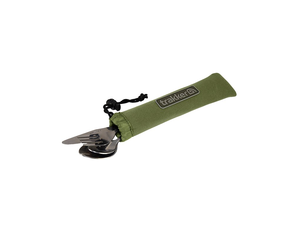 Velice kompaktní sada příborů Trakker – Armolife Cutlery Set v praktickém obalu.