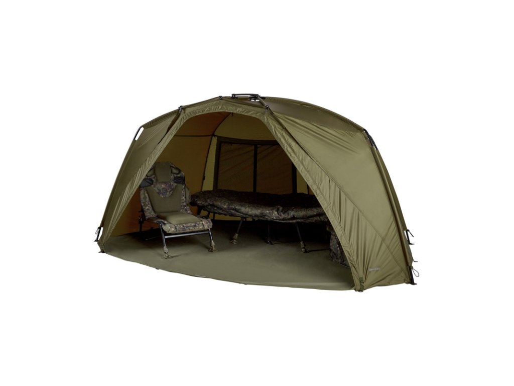 Velikost bivaku 150 poskytuje plochu, která se vejde na většinu rybářských stanovišť, a zároveň nabízí dostatek prostoru pro velké lehátko a další vybavení. Dva velké zadní větrací otvory zajišťují proudění vzduchu, aby byl přístřešek v horkých dnech chladnější. Bivak je vyroben z pevné a voděodolné látky, součástí jsou suché zipy pro uchycení prutů a 2 bouřkové tyče pro větší stabilitu.