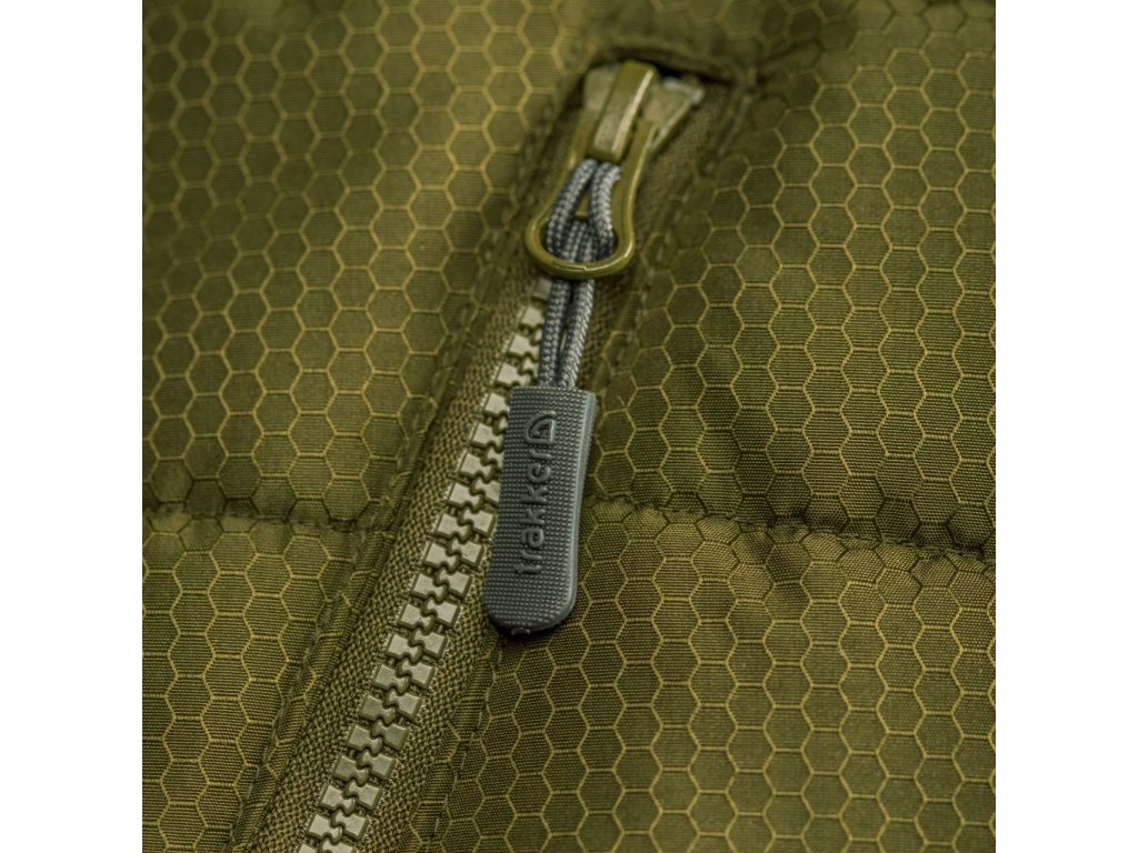 Nabízí skvělou izolační vrstvu, která vás při lovu kaprů udrží vždy v teple. Nová kombinace khaki a šedé barvy, kterou naleznete jak na bundě, tak na vestě, je doplněna stříbrnými zipy a decentním brandingem na obou oděvech.