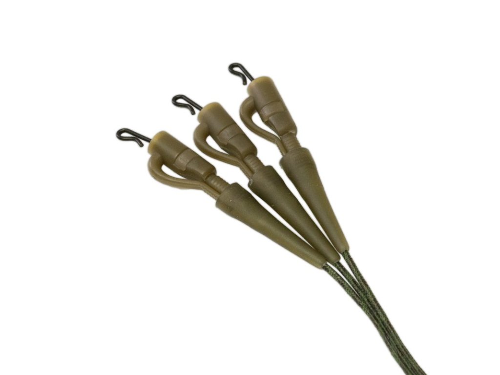 Použití je jednoduché: připojte leader ke kmenovému vlasci, připevněte návazec pomocí rychlovýměnného obratlíku QC Swivel, nasaďte olovo do závěsky Lead Clip a zajistěte ho převlekem Tail Rubber.