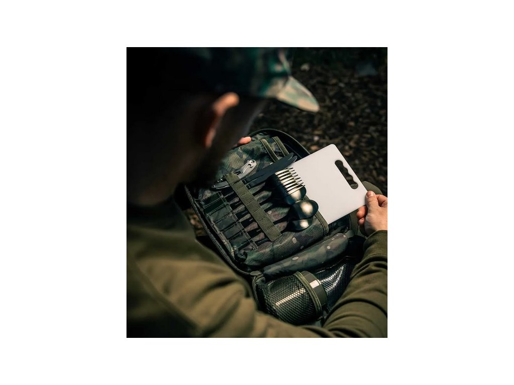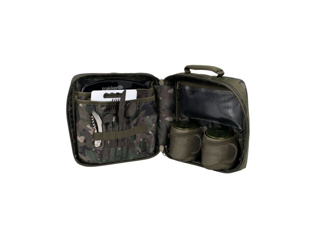 NXC Deluxe Food Set je sada všeho, co potřebujete pro konzumaci jídla nebo nápojů v úhledně prezentované, polstrované camo tašce, která je vybavená odolným dvojitým zipem, neoprenovou rukojetí a voděodolnou PVC základnou.