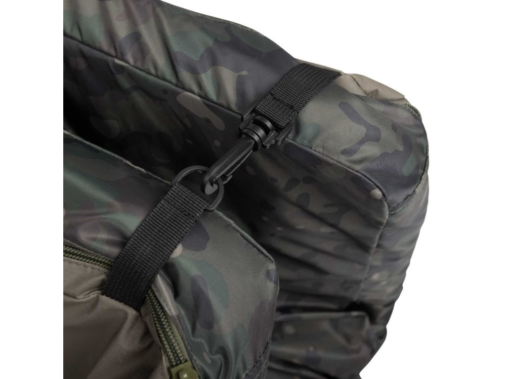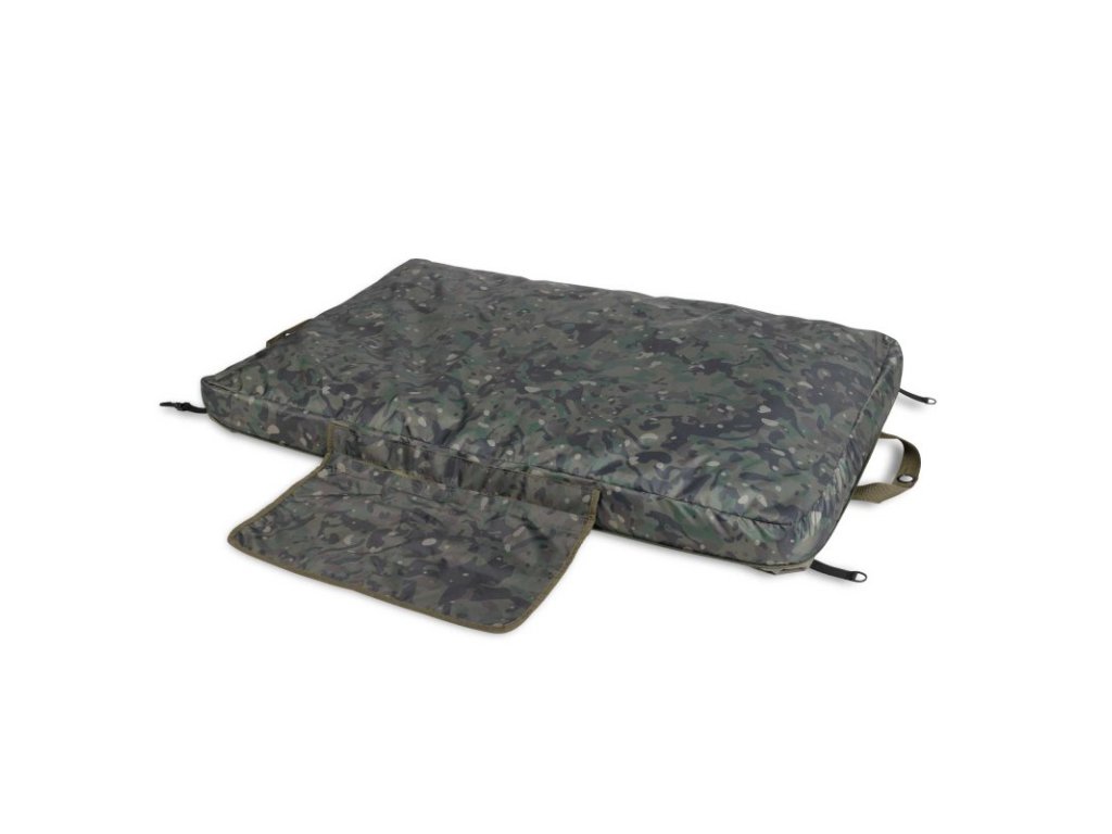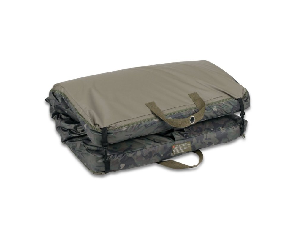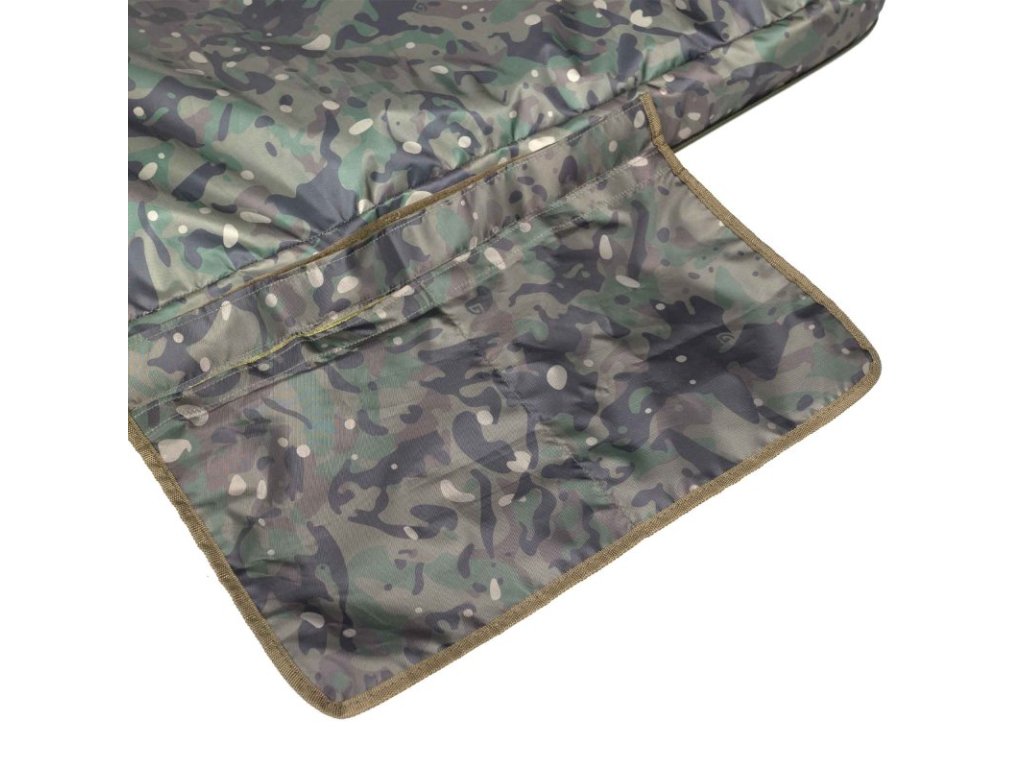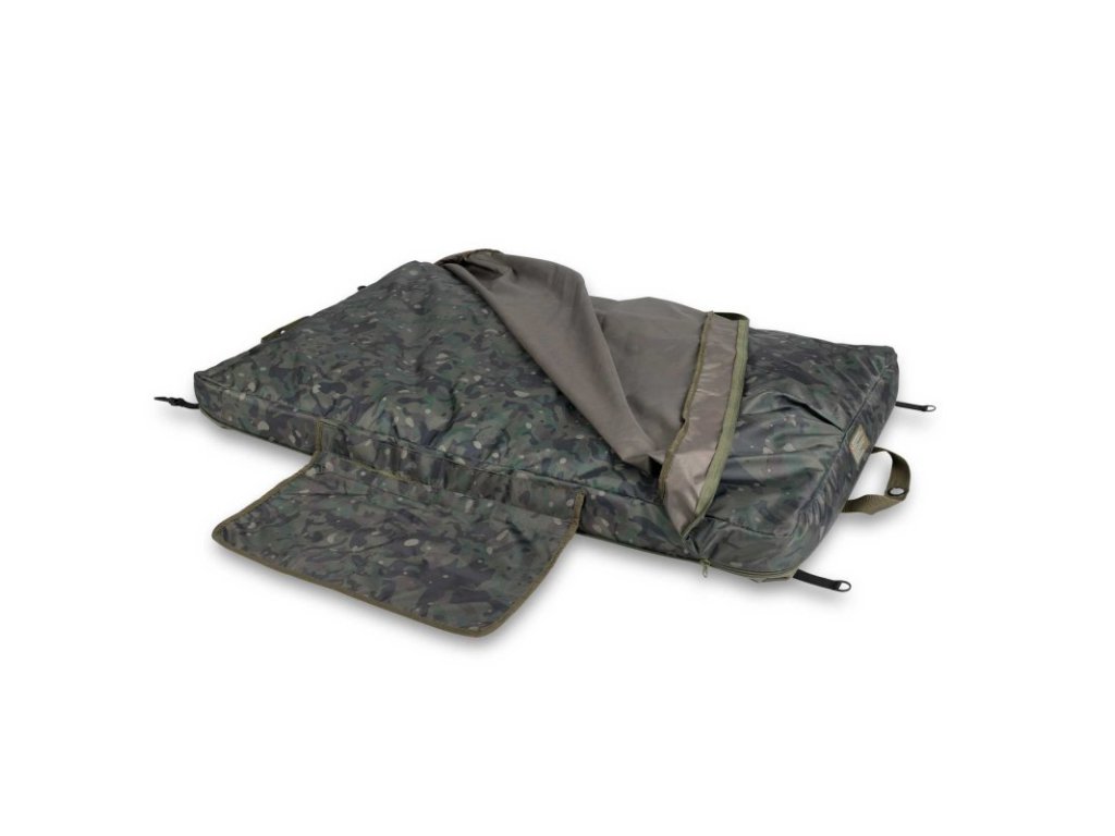 Váš úlovek lze umístit i na vnější vrstvu odháčkovací podložky, nebo jí lze odepnout a použít pro přikrytí úlovku. Dodává se s velkou odnímatelnou podložkou pod kolena, která může sloužit jako praktický úložný vak například pro váhu nebo další produkty péče o kapry.