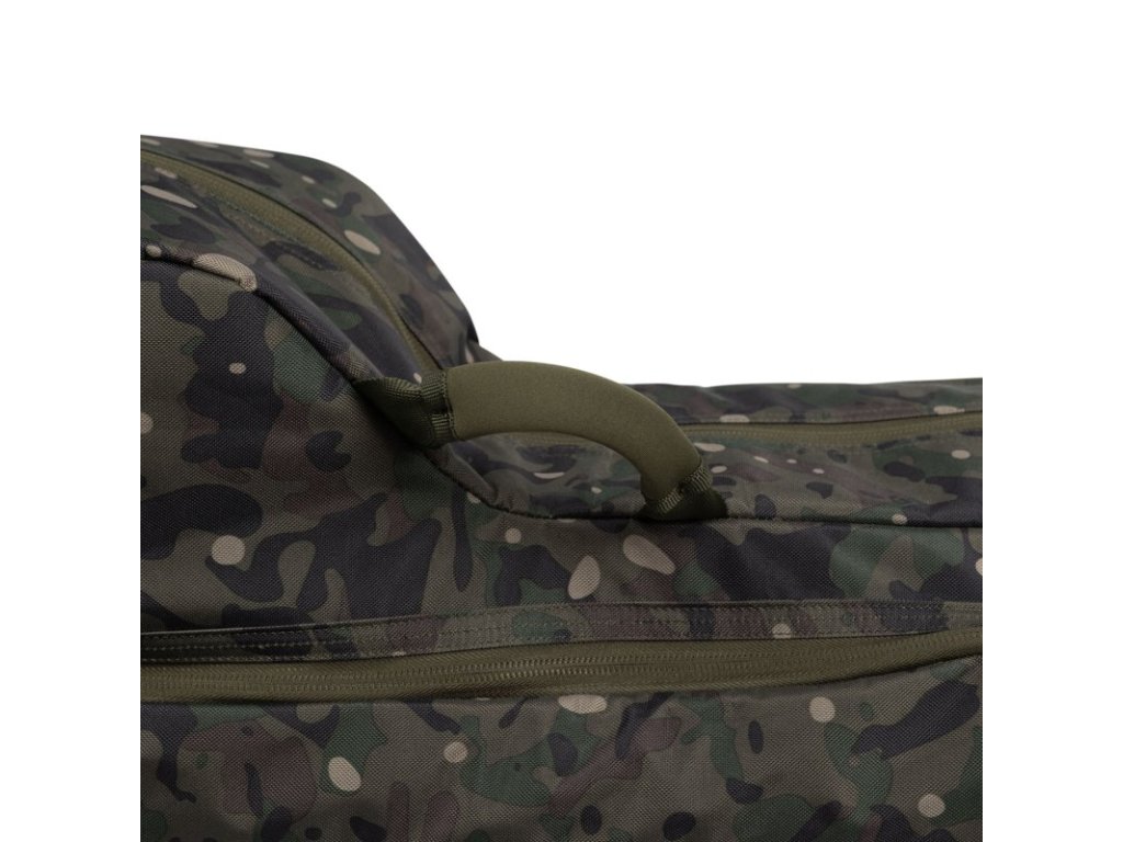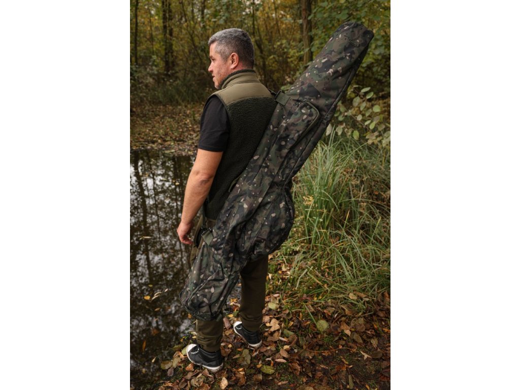 Silně polstrované pouzdro na pruty je vyladěno k dokonalosti a poskytuje velkorysou ochranu pro tři plně připravené kaprové pruty. Dvoucestný, odolný hlavní zip zajišťuje rychlý a snadný přístup k vašim prutům a navijákům. Rozšířené části špiček, spojené s vnitřním polstrováním, pojmou bez problémů 50 mm očka a zajistí, že budou vaše pruty během přepravy chráněny. Každý prut je oddělen vnitřním, polstrovaným pouzdrem a zajištěn na místě pomocí vnitřních neoprenových pásků. K dispozici je i další popruh a elastická smyčka, kterou lze použít pro uložení kobry, takže i ona může těžit z polstrované ochrany. Nadrozměrná část pouzdra na naviják je silně polstrovaná a velkoryse dimenzovaná, aby ochránila i ty největší navijáky. Obě strany pouzdra NXC 3 Rod Sleeves mají velké vnější kapsy na zip, které jsou vhodné pro podběráky, vidličky a další příslušenství. Na zadní straně je na základně velká otevřená kapsa, kam můžete uložit další prut, který lze zajistit pomocí napínacích popruhů. Do další, menší otevřené kapsy na zip lze umístit podběrák nebo uložit distanční tyče. Hned pod hlavním zipem je úhledně umístěná kapsa na zip pro uložení olov.