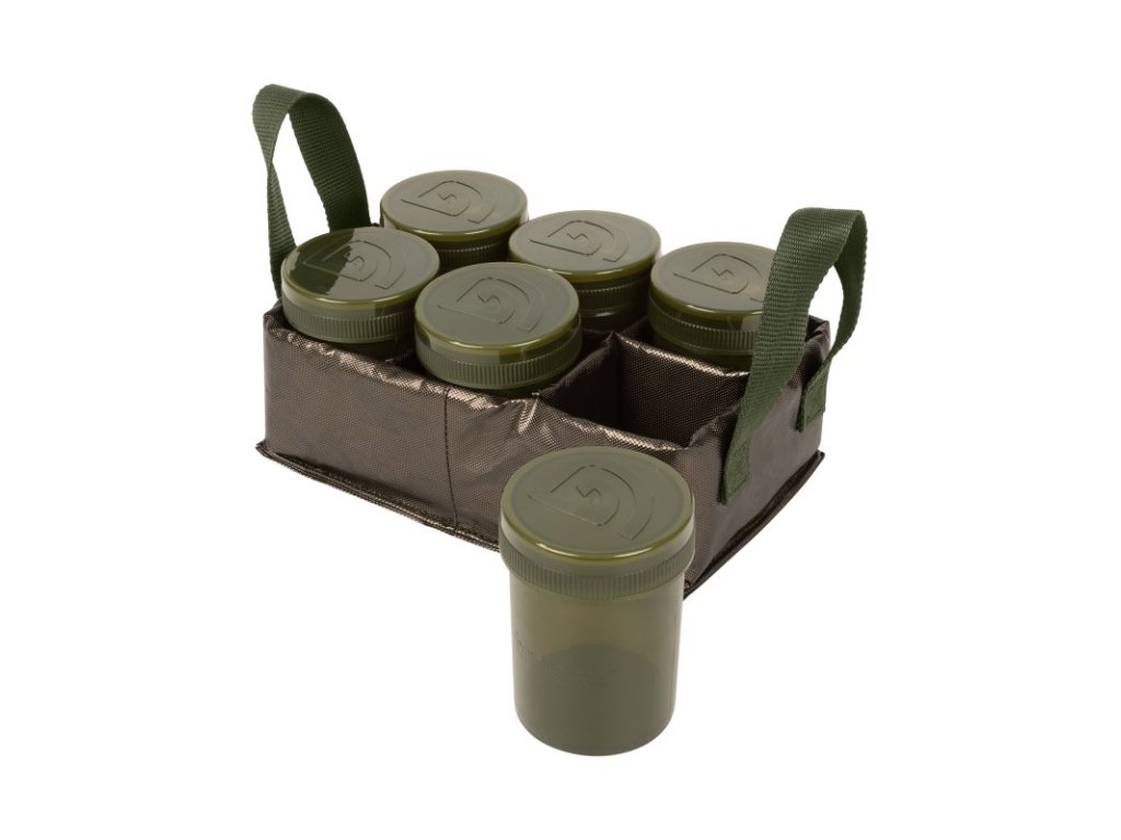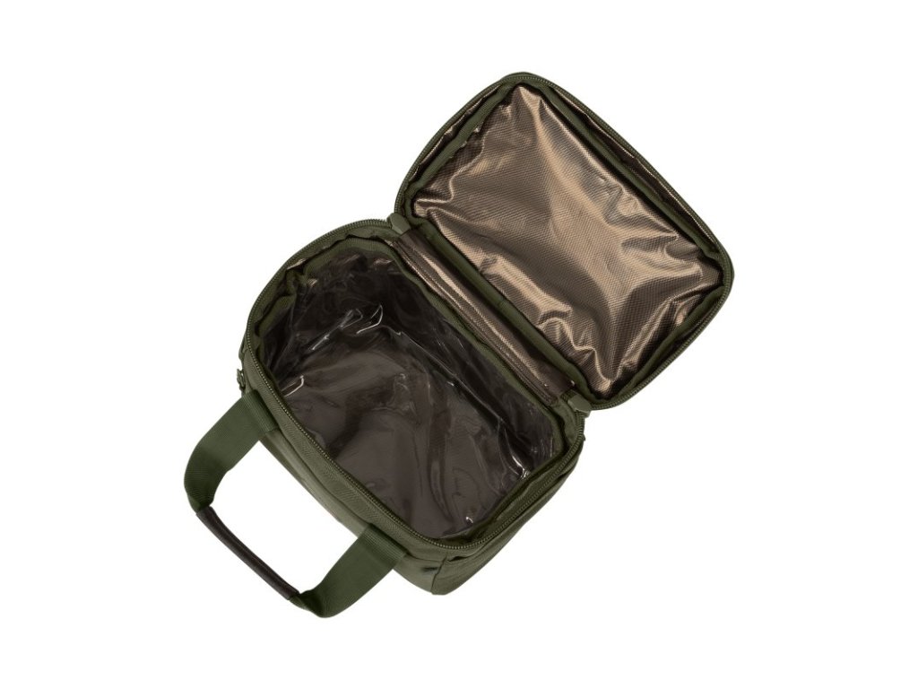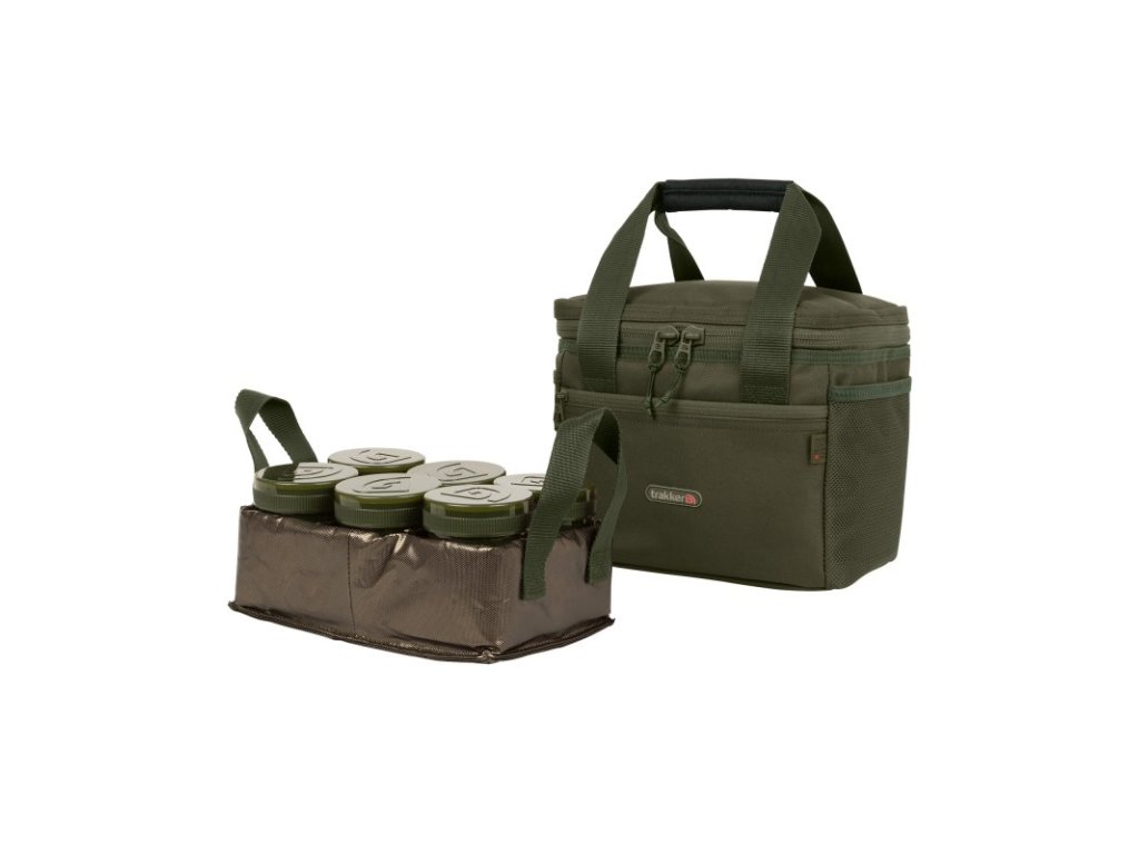 Taška je dodávána s šesti nepropustnými dózami, uloženými v izolovaném, vyjímatelném podnosu, což vám umožňuje uložit další návnady nebo vybavení v hlavní přihrádce, která je vystlaná vysokohustotní, termální podšívkou Chilla a odnímatelným PVC vnitřkem, který lze snadno vyčistit.