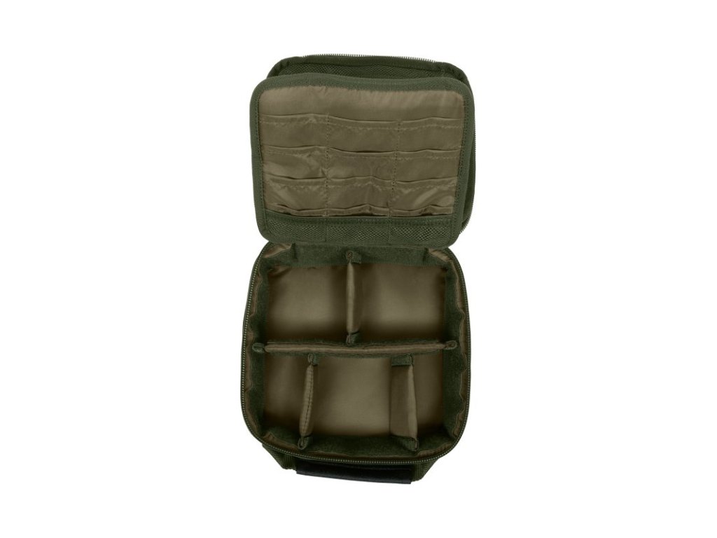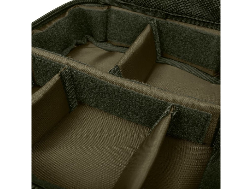 Penál NXG Compact Tackle Bag obsahuje přizpůsobitelný systém přihrádek a velké množství kapes vhodných pro různě velkou, rybářskou bižuterii a další náčiní.