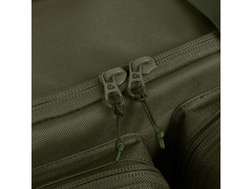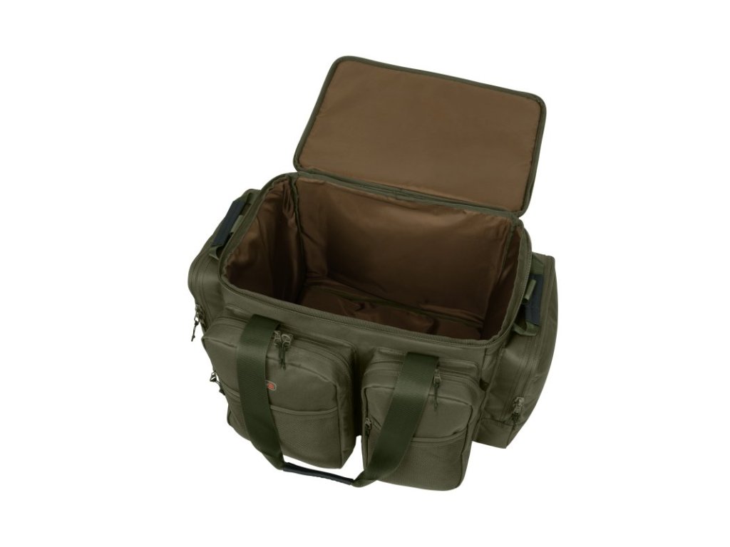 Zpevněné víko hlavního oddílu slouží také jako alternativa ke stolku do bivaku. Pět vnějších kapes poskytuje úložný prostor pro různé druhy rybářského vybavení. Robustní zipy umožňují snadný přístup ke všem kapsám i hlavnímu oddílu.