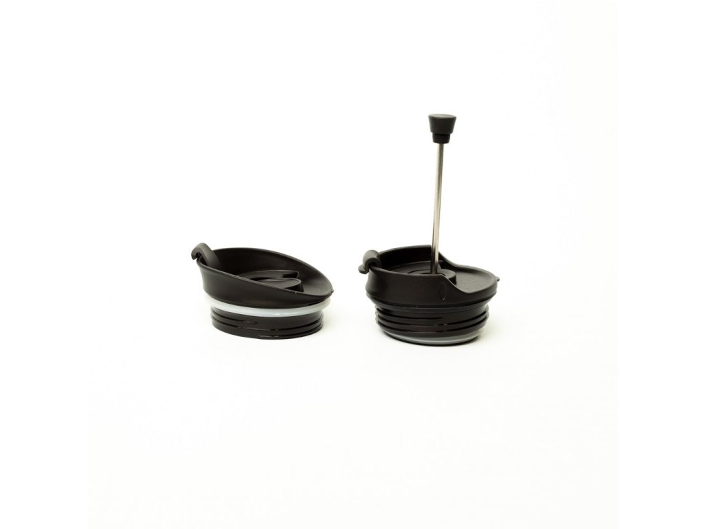Termoska je dodávána se dvěma různými víčky: běžným víčkem odolným proti rozlití a praktickým víčkem s pístem (frenchpress), což z ní činí optimální rybářskou vychytávku.