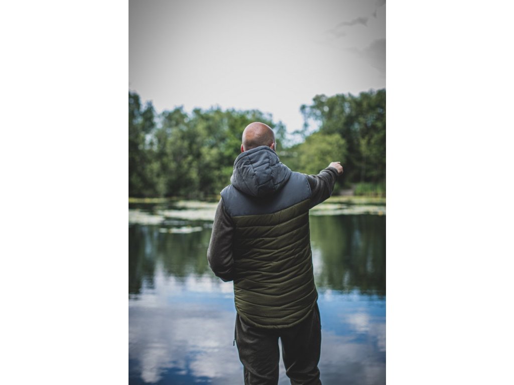 Nabízí skvělou izolační vrstvu, která vás při lovu kaprů udrží vždy v teple. Nová kombinace khaki a šedé barvy, kterou naleznete jak na bundě, tak na vestě, je doplněna stříbrnými zipy a decentním brandingem na obou oděvech. Vesta má kapuci pro extra ochranu, prodloužený zadní lem, který chrání před chladným větrem, přední kapsy na zip, které udrží nejrůznější drobnosti v bezpečí, a tónovaný Aztec potisk na podšívce.