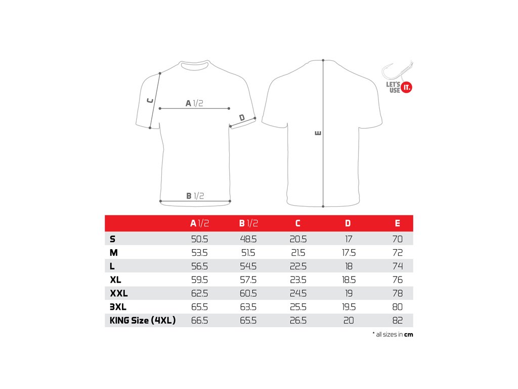 Řekněte světu, že jste rybář s vášní a stylem pomocí trička Delphin USE IT! Ať už se vypravíte na ryby nebo do města, toto triko vám zaručí pohodlí a originální styl. Nápis USE IT! dává jasně najevo, že je pravý čas vyrazit k vodě a použít tu správnou montáž k ulovení vytouženého úlovku. Kromě jedinečného stylu triko poskytuje komfort nezbytný pro úspěšný rybolov či běžné nošení. Samotné tričko je vysoké kvality, stejně jako použitý barevný tisk. Nabízíme je v široké škále velikostí od S až po KING SIZE (ekvivalent 4+XL, který je ve většině zemí označován jako XXXXXL). Model King size tedy hravě oblékne i ty nejstatnější rybáře o hmotnosti 135kg+. Složení: 100% bavlnaDoplňkové parametry