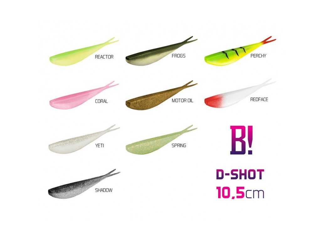 Velmi účinná měkká nástraha s tzv. vlaštovčím ocasem. Nástraha výborně pracuje ve vodě a svým přirozeným pohybem dokáže vyprovokovat i opatrného dravce. Na výběr je z mnoha zajímavých barev, podle vašich preferencí. Určitě oceníte i samotný materiál nástrahy. Ten je dokonale elastický, příjemně měkký a díky své houževnatosti i neuvěřitelně odolný a trvanlivý. Navíc extrémní bomba! Nástrahy mají velmi výrazné rybí aroma, které není způsobeno tradiční metodou potřením aromatizovaným olejem. Toto aroma je totiž přimícháno do základního materiálu a proto má mnohem delší trvanlivost. Kromě toho je D-SHOT materiál SLANÝ, což znásobuje atraktivitu pro predátora. To zaručuje nespočetné hodiny pravé rybářské euforie u vody!Doplňkové parametry