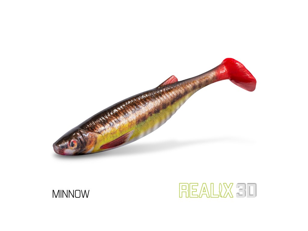 Delphin Realix 3D je měkká umělá nástraha typu paddle tail, která ve vodě dokonale imituje malou rybku. Její velikost je přizpůsobena lovu větších dravců, jako jsou štika, candát nebo sumec. Jak už název napovídá, jejím hlavním poznávacím znakem je realistický potisk, díky kterému jsou na jejím povrchu zobrazeny i ty nejmenší detaily. Realistický vzhled podtrhují výstupky a prohlubně napodobující žebra, žábrové oblouky či samotné ploutve. Aby byla nástraha ještě lákavější a viditelnější, její ocásek je zabarven UV aktivními barvami. Během vedení nástrahy ocásek výrazně kmitá ze strany na stranu, přičemž vytváří intenzivní vibrace dráždící smysly dravců. Nástraha skvěle pracuje i při pomalém vedení a při použití lehkých závaží. Barevná provedení nástrahy důvěrně imitují různé druhy ryb, jako je štika, pstruh nebo okoun. V nabídce však naleznete i netradiční barevné varianty napodobující myš, hada nebo růžovou kombinaci se vzorem grafity pod názvem Urban. Materiál se vyznačuje mimořádnou odolností a trvanlivostí, díky kterým nástraha vydrží opakované útoky predátorů. Dokonalé realistické zpracování a bezvadný pohyb nástrahy dokáží oklamat i ty nejopatrnější predátory a vám zaručí časté záběry při vašich toulkách za dravci. Technické parametry: Hmotnost nástrahy: 16gDoplňkové parametry