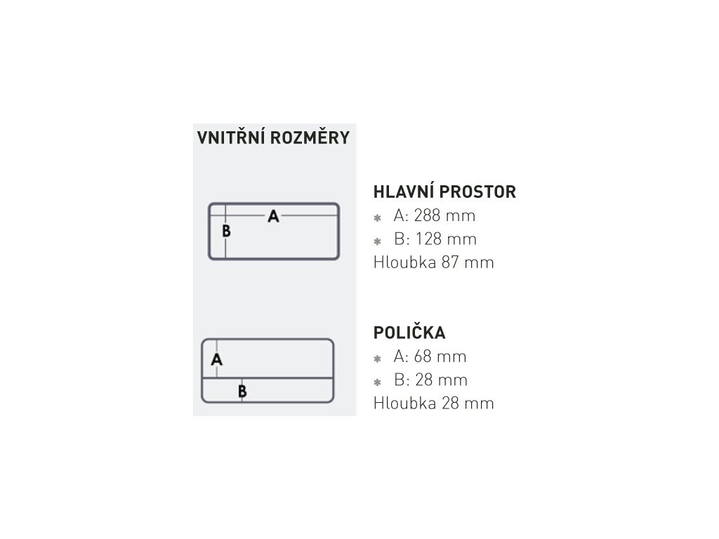 Jednopatrový - 4 přihrádky. Konstrukce víka zabraňuje vysypání obsahu přihrádek. Materiál: Nárazuvzdorný kopolymer, zámek ABS <iframe width="427" height="240" src="//www.youtube.com/embed/BrY5MKTxeyA" frameborder="0" allowfullscreen></iframe>Doplňkové parametry