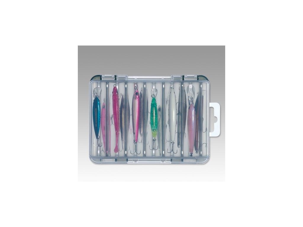 <p>Oboustranná krabička na ukládání pilkrů, wobblerů.<br /> Jedinečné tvarování přihrádek dovolí uložení wobblerů a pilkrů z obou stran při minimální tloušťce krabičky.<br />Materiál: Polypropylen.<br />š- 14x h-10,5x v-3 cm</p>Doplňkové parametry