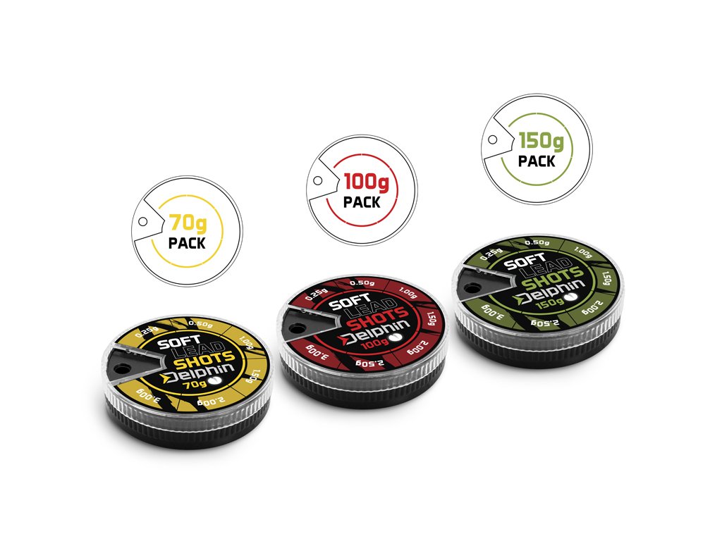 Vyvažovací olůvka vysoké kvality a bezvadného zpracování. Baleno v praktickém obalu s dávkovačem. V nabídce různé velikosti a gramáže. Vyvažovací olůvka Delphin SOFT (žlutá krabička) | 70g -žluté balení 70g | 0.10-1.25g obsahuje následující gramáže: 0.10g, 0.25g, 0.50g, 0.75g, 1.00g a 1.25g -žluté balení 70g | 0.10-2.00g obsahuje následující gramáže: 0.10g, 0.25g, 0.50g, 1.00g, 1.50g a 2.00g -žluté balení 70g | 0.25-3.00g obsahuje následující gramáže: 0.25g, 0.50g, 1.00g, 1.50g, 2.00g a 3.00g Vyvažovací olůvka Delphin SOFT (červená krabička) | 100g -červené balení 100g | 0.10-1.50g obsahuje následující gramáže: 0.10g, 0.25g, 0.50g, 0.75g, 1.00g, 1.25g a 1.50g -červené balení 100g | 0.10-2.50g obsahuje následující gramáže: 0.10g, 0.25g, 0.50g, 1.00g, 1.50g, 2.00g a 2.50g -červené balení 100g | 0.25-3.00g obsahuje následující gramáže: 0.25g, 0.50g, 1.00g, 1.50g, 2.00g, 2.50g a 3.00g Vyvažovací olůvka Delphin SOFT (zelená krabička) | 150g -zelené balení 150g | 0.10-1.50g obsahuje následující gramáže: 0.10g, 0.25g, 0.50g, 0.75g, 1.00g, 1.25g a 1.50g -zelené balení 150g | 0.10-2.50g obsahuje následující gramáže: 0.10g, 0.25g, 0.50g, 1.00g, 1.50g, 2.00g a 2.50g -zelené balení 150g | 0.25-3.00g obsahuje následující gramáže: 0.25g, 0.50g, 1.00g, 1.50g, 2.00g, 2.50g a 3.00gDoplňkové parametry