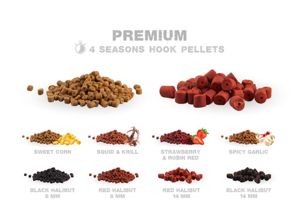 - Premium HALIBUT pelety s dírkou určené pro rychlé a snadné chytání