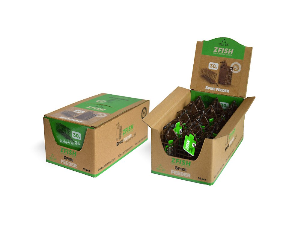 ZFISH Spike Feeder je otevřené,drátěné, feederové krmítko s hroty na spodní straně v té nejvyšší možné kvalitě materiálu i zpracování. Můžete si být jistí, že tato krmítka díky svému naprosto přesnému vyvážení, vždy dosednou ke dnu tak, jak mají a v proudu budou spolehlivě držet na svém místě! Další výhodou je, že je provedeno v přírodní hnědé barvě s černým žíháním, takže snadno splyne se dnem a ryby mnohem méně ruší nebo plaší. Jedná se tedy o velice univerzální, středně velké, hranaté, feederové krmítko na řeky do proudů.