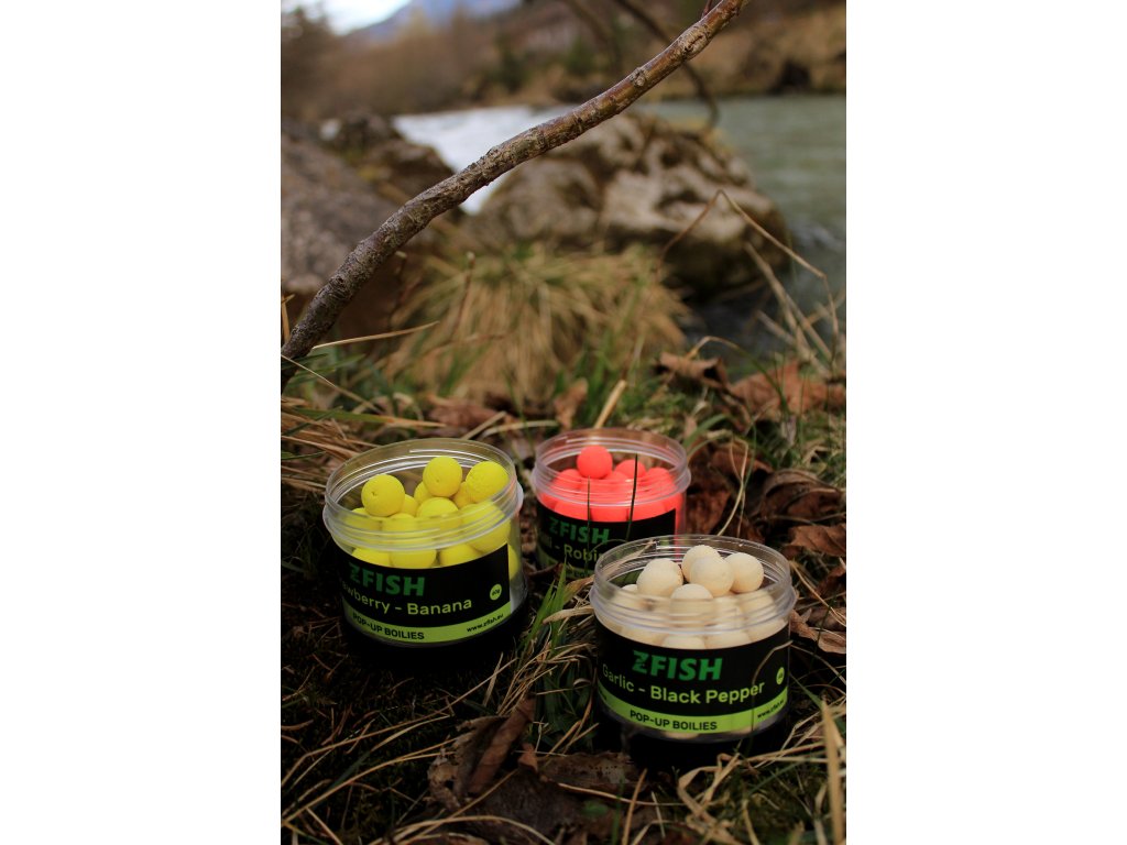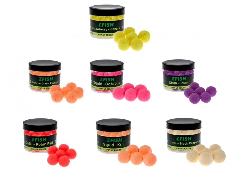 ZFISH Plovoucí Boilies POP-UP 16mm - 60G jsou plovoucí boilies, které mají 7 stejných příchutí jako naše ostatní nástrahy, skvěle tak ladí a vytváří ideální kombinaci pro úspěšný lov kaprů. Tyto "popky" mají velmi atraktivní fluo barvy a mají vysoký vztlak, takže jsou ideální zejména pro návazce Ronnie a Zig Rig. Navíc velmi dobře a bez problémů vstřebávají a přijímají další boostery. Mezi klíčové přednosti patří jejich dlouhotrvající aroma i po delším máčení ve vodě.